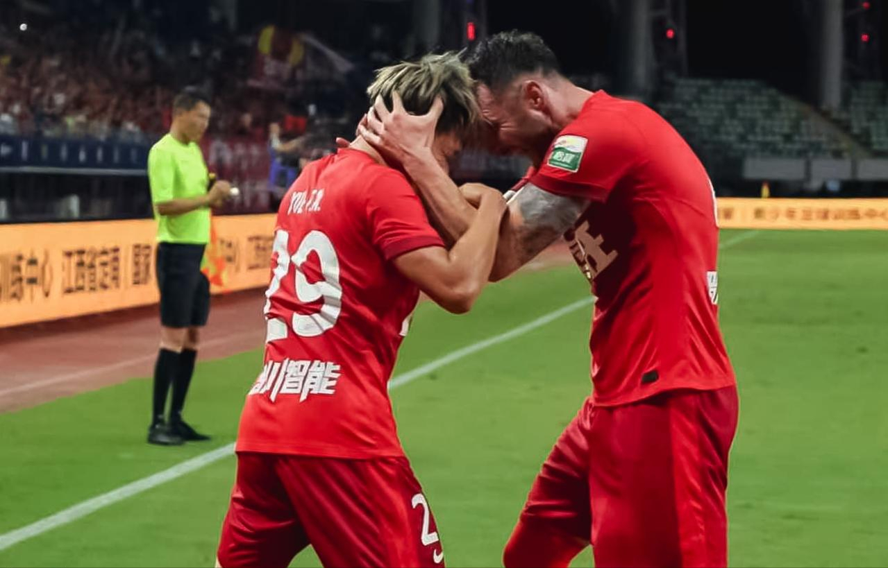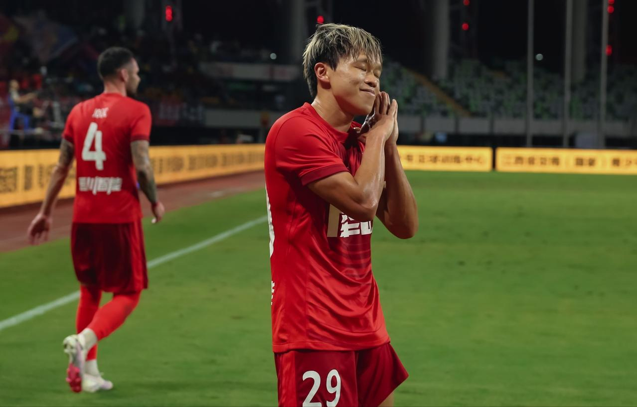 持续的高压进攻终于收到成效。第44分钟,茹子楠在右路接陈序煌横传后稍作调整,在距球门25米处突然起脚远射,皮球击中金洋洋腿部后发生折射,划出一道诡异弧线直坠网窝,梅州客家1比0领先青岛海牛!这记精彩的世界波不仅是茹子楠本赛季的首粒进球,更打破了梅州客家连续18场无法零封对手的尴尬纪录。