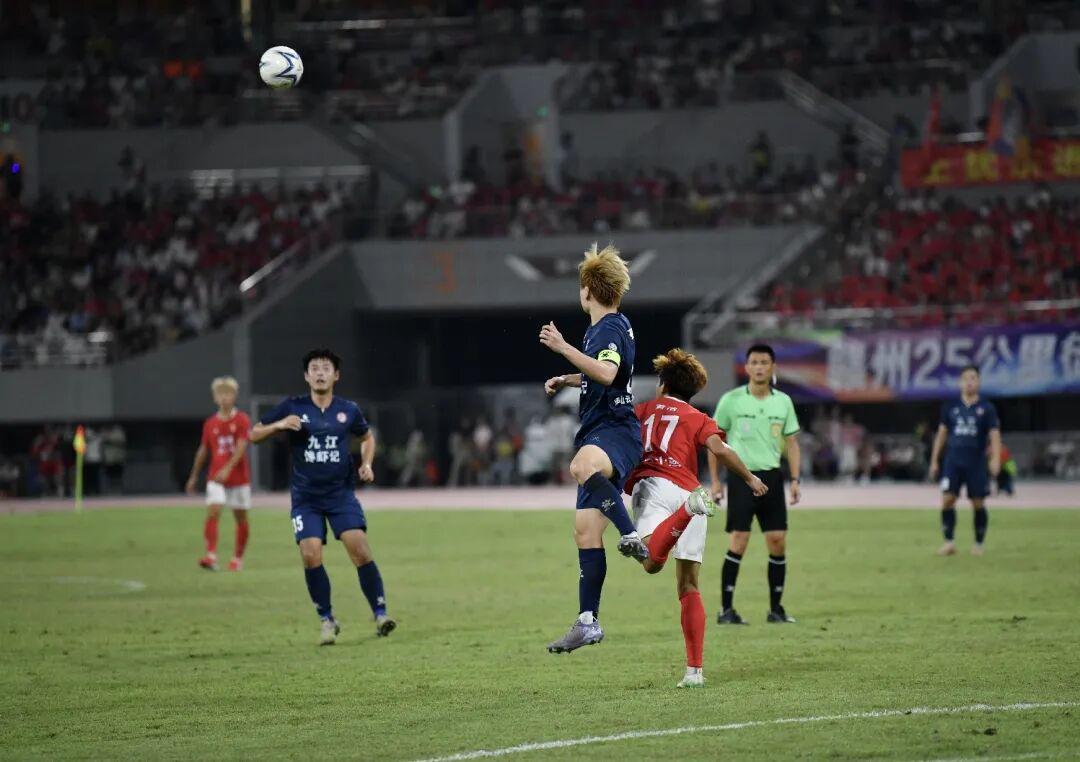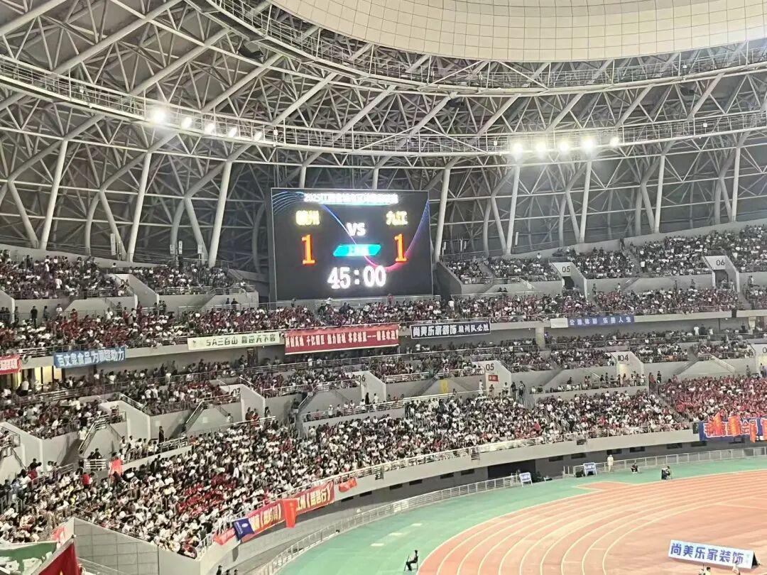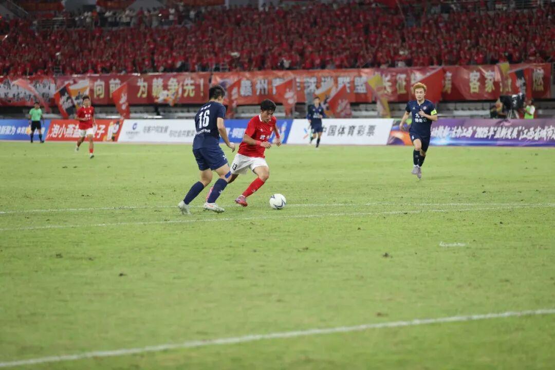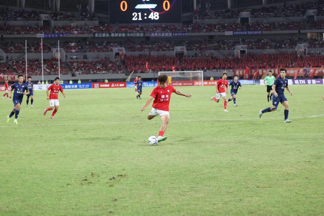 上半场即将结束的最后几分钟,比赛进入了高潮。赣州队和九江队各自抓住了对方后卫的一次失误,由赣州队的徐国森和九江队的莫伟豪分别打入一球(九江队为点球),比赛戏剧性地打成了1:1平局。