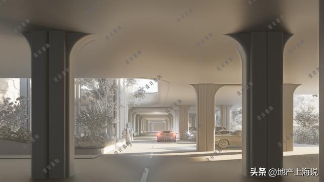 从效果图上可以看到,车库的窗户直接对着外面的道路,光线能够充分透进来;业主走在抬板上的园林里,不会被地面的车流所打扰,真正实现了“人车分流”。更令人期待的是,该项目还计划在抬板空间里做更多创新设计,比如在架空层增设健身区、儿童游乐区等设施,甚至将部分空间打造成花园景观。