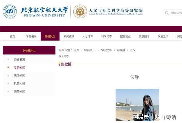 针对网友的质疑,北航工作人员回应称,何静确实是该校教师,学院官网上有她详细的介绍及研究成果,可进行了解。北航官网显示,何静不仅担任科技治理中心副主任、副教授,还是抖音自媒体博主“数据学姐”,原北京清博智能科技有限公司创新院执行院长。
