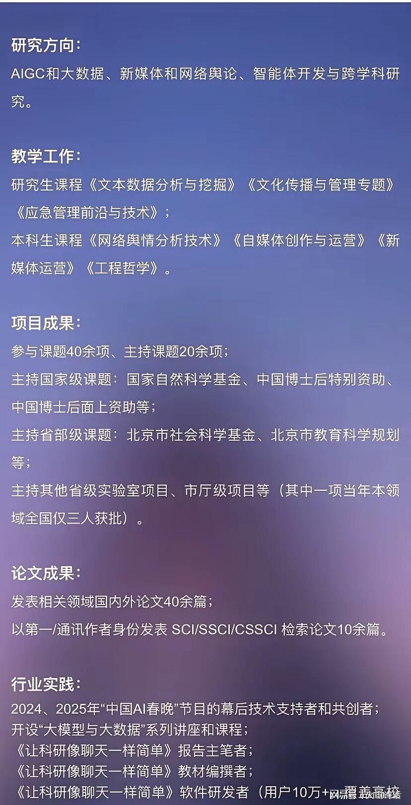 这种从农业资源到地球科学,再到新闻传播的跨学科背景,引发了部分网友的质疑。有网友直言:“本硕博学了10年的资环专业,却去新闻学院?博士毕业后就去清华新闻与传播学院当了两年博士后,你不觉得非常不正常吗?”