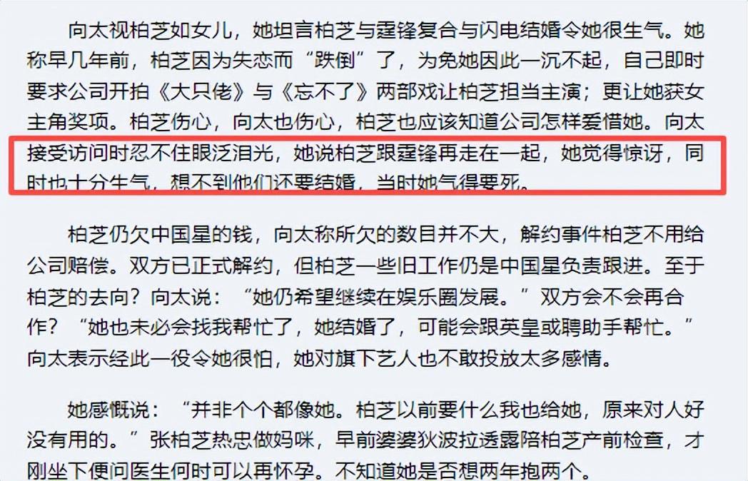2007年,向太就爆料张柏芝几年前曾因失恋而“跌倒”。