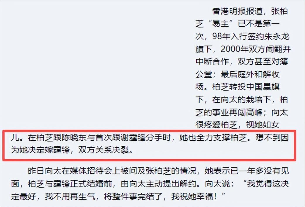 据悉,在向太和谢家的保护下,张柏芝的事业并未直接终止。