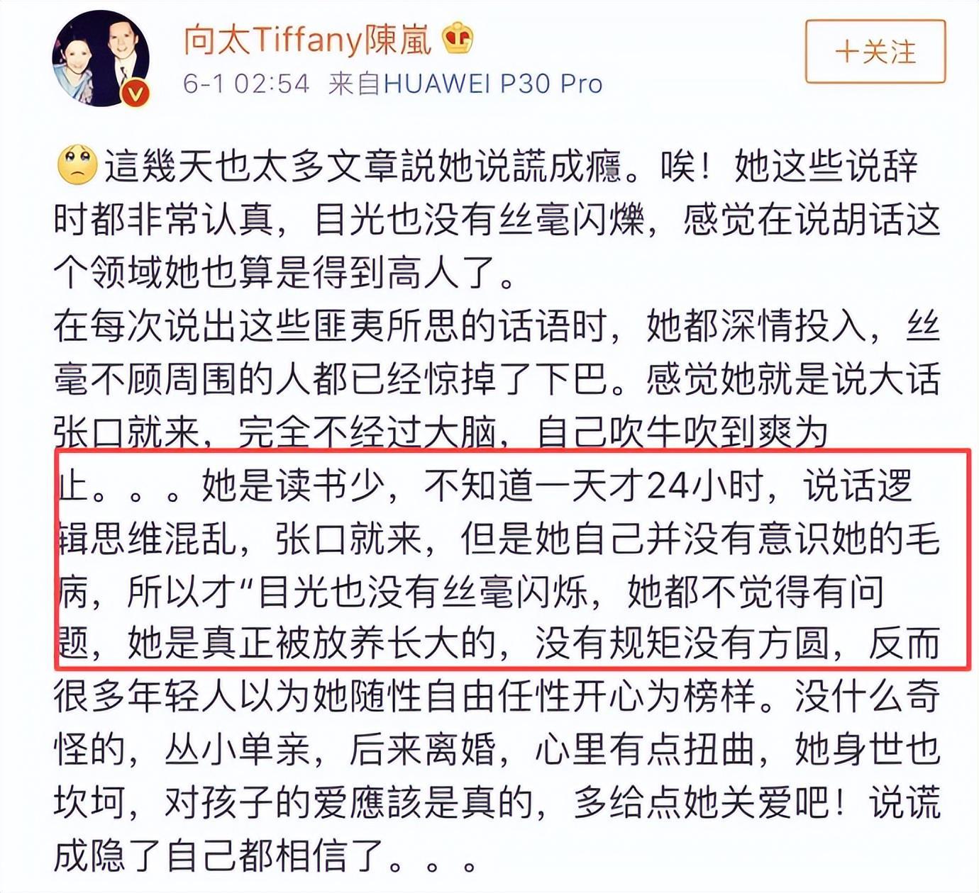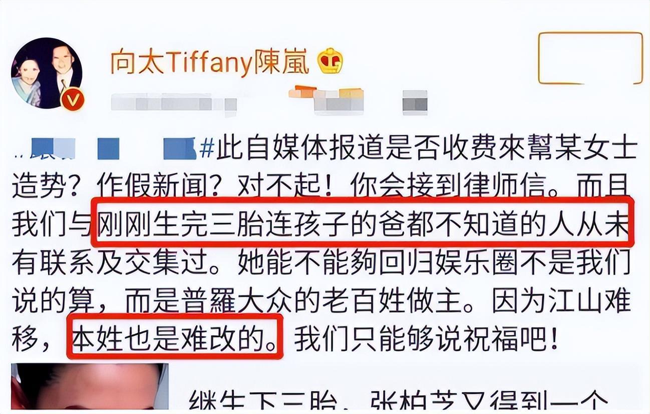 2019 年她生三胎却不公布父亲信息,外界众说纷纭时,向太又补了一句: