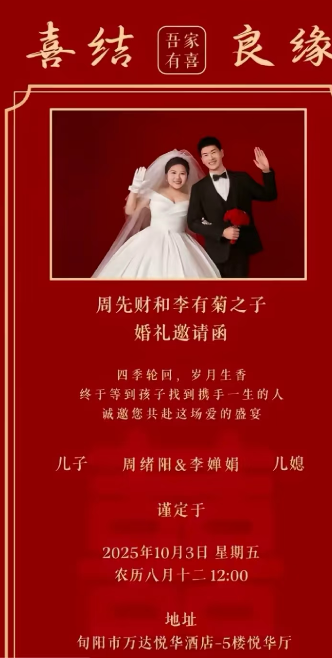 新郎父亲在朋友圈中写道:“不求你们大富大贵,只愿你们平安快乐,开心过好每一天。”可见,他并不是一个看重钱财的人。