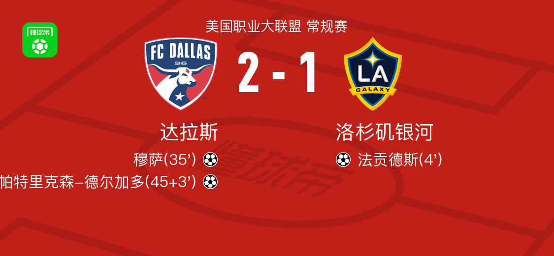 北京时间10月5日,美国职业大联盟(MLS)常规赛迎来一场焦点对决,达拉斯队坐镇主场迎战洛杉矶银河。最终,达拉斯凭借穆萨与帕特里克森-德尔加多的进球,以2-1逆转战胜对手,全取三分。
