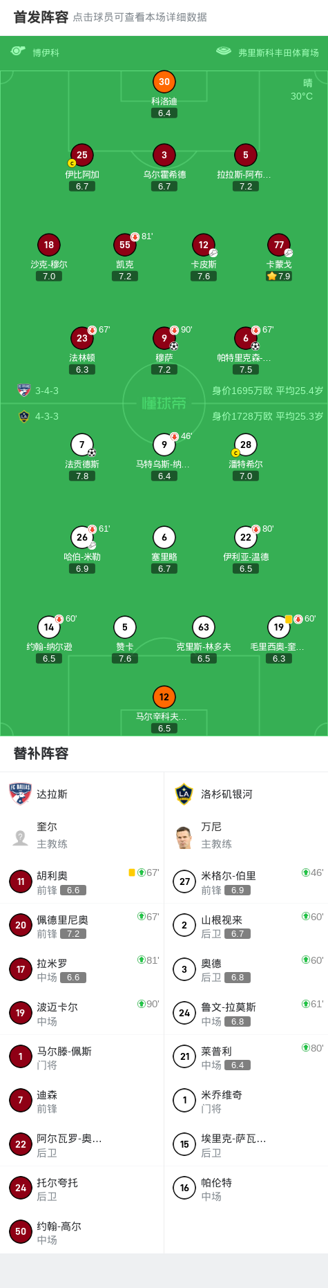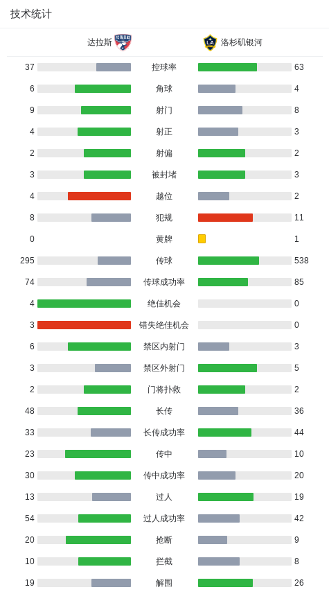 从技术统计来看,达拉斯在控球率、射门次数等关键数据上占据优势,而洛杉矶银河则依赖快速反击制造威胁。