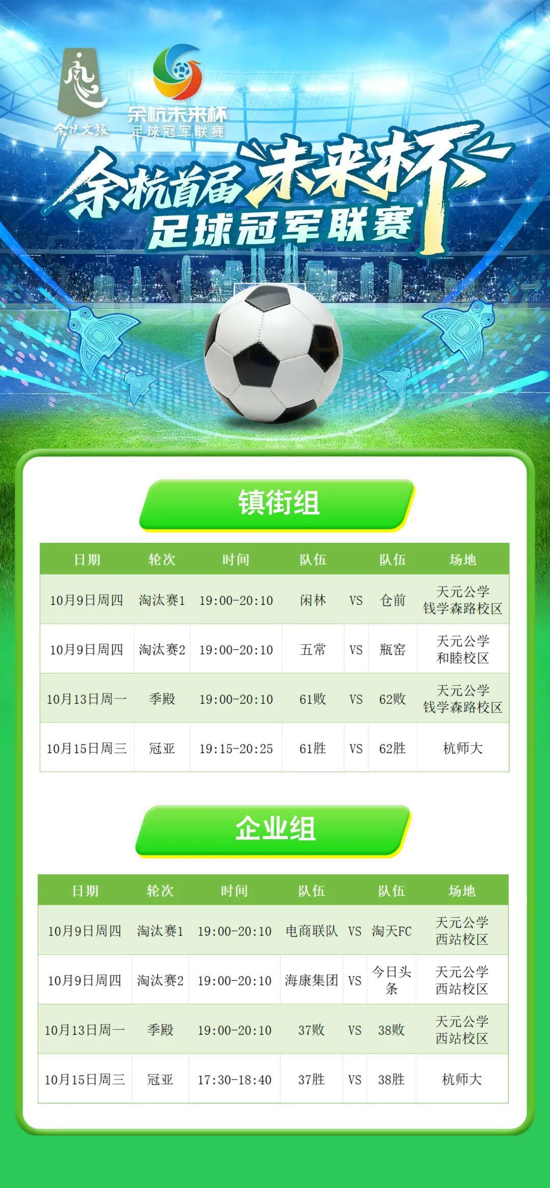 备受期待的决胜之夜将于10月15日在杭州师范大学仓前校区举行,目前已正式开启门票销售,赛事共设置2档票价,分别为8元、18元。足球爱好者们可冲~