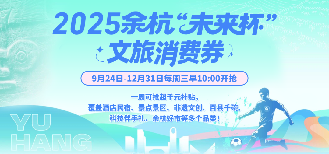 每周三10:00,消费者登录 “支付宝”APP首页搜索“余杭文旅消费券”,即可领取消费券哦!