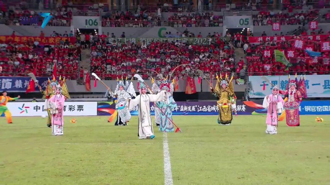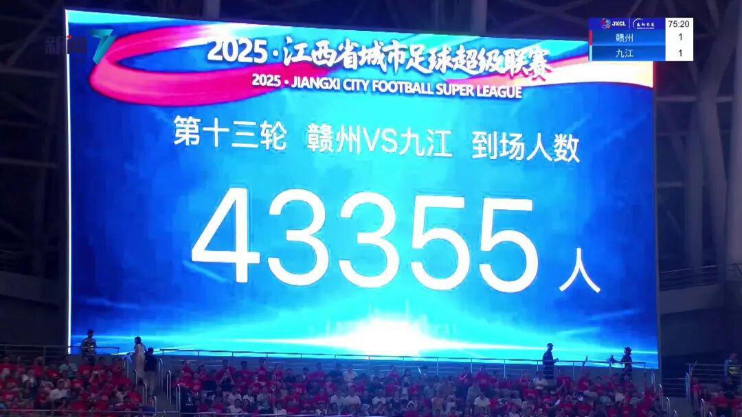 上半场伤停补时阶段,赣州队72号球员防守失误,情急之下在禁区内拉到九江队队员,被判罚点球。九江队点球破门,1比1,双方回到同一起跑线。