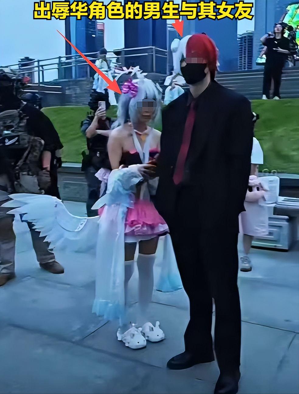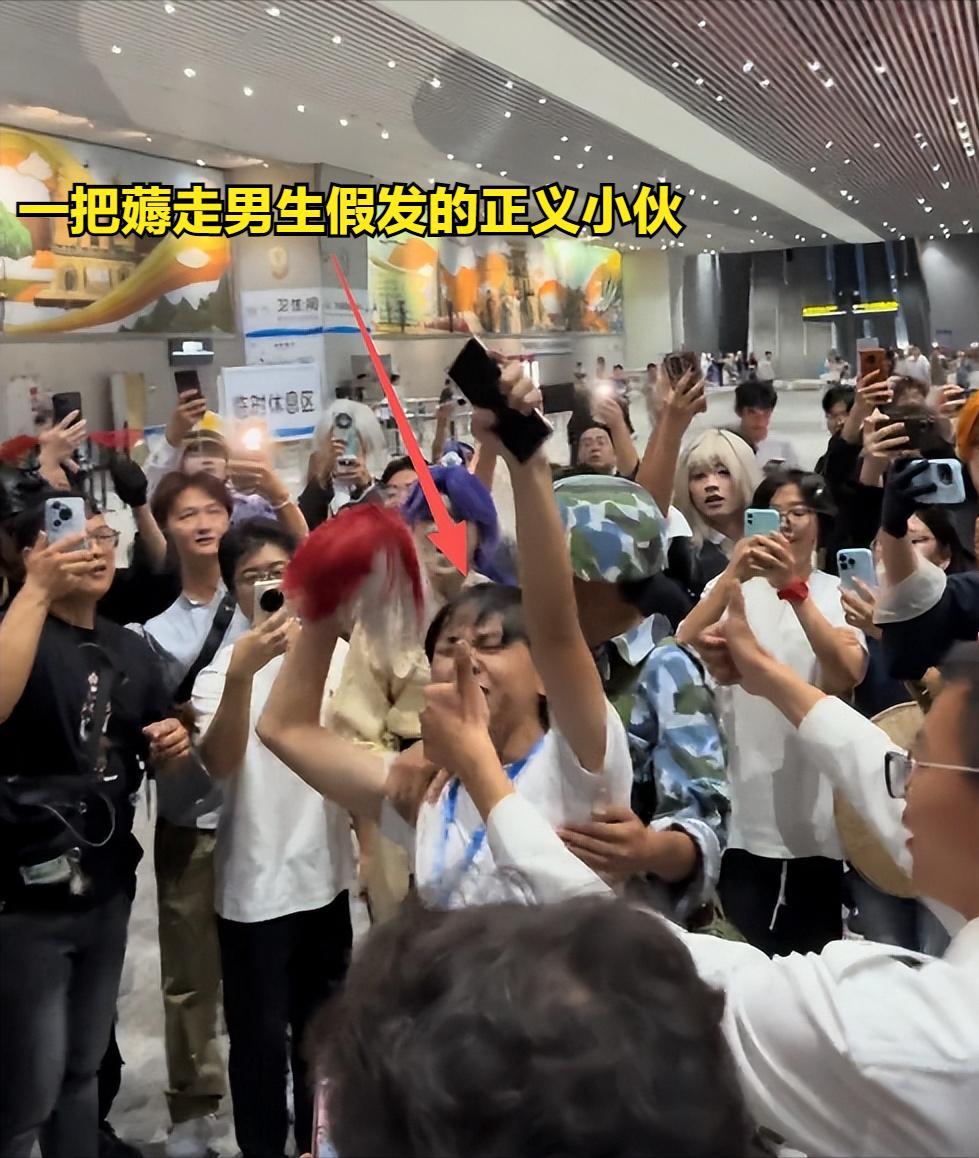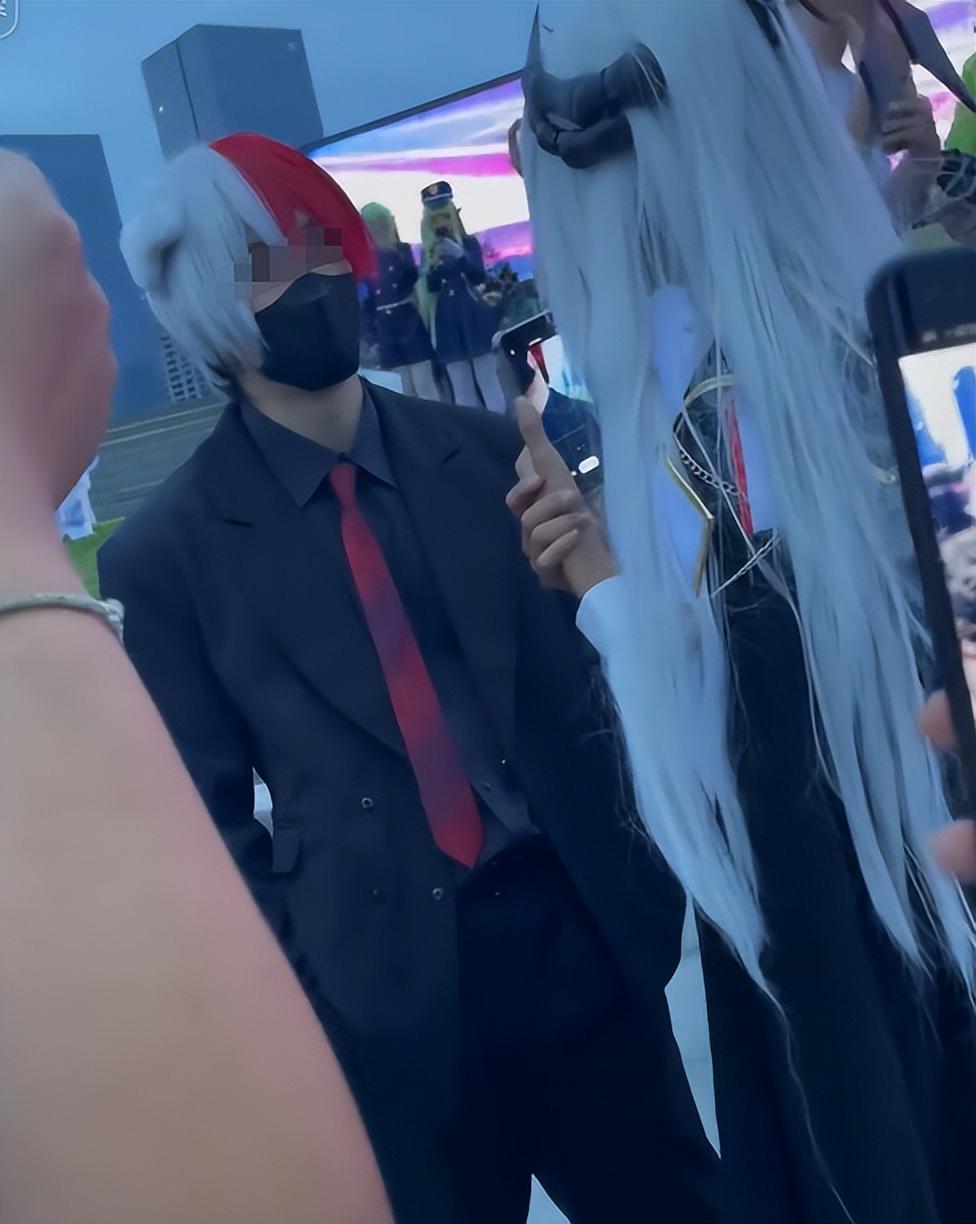 原来,事发当天下午,一名头戴红白阴阳头假发的男生与女友一同进入漫展。这独特的假发造型瞬间吸引了在场所有cosplay玩家的注意。