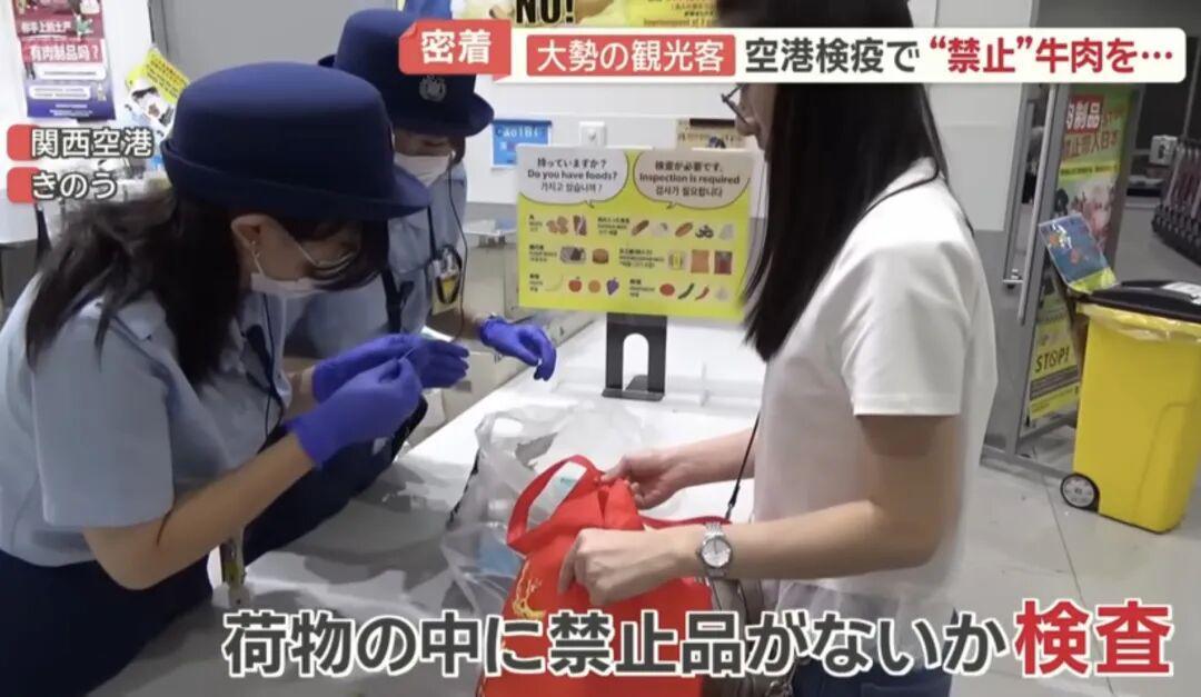 虽然日本明令禁止旅客携带肉类入境,但这名男子却不以为意,还大声说道:“我们出国旅行的时候大家都会带这个吃的!”