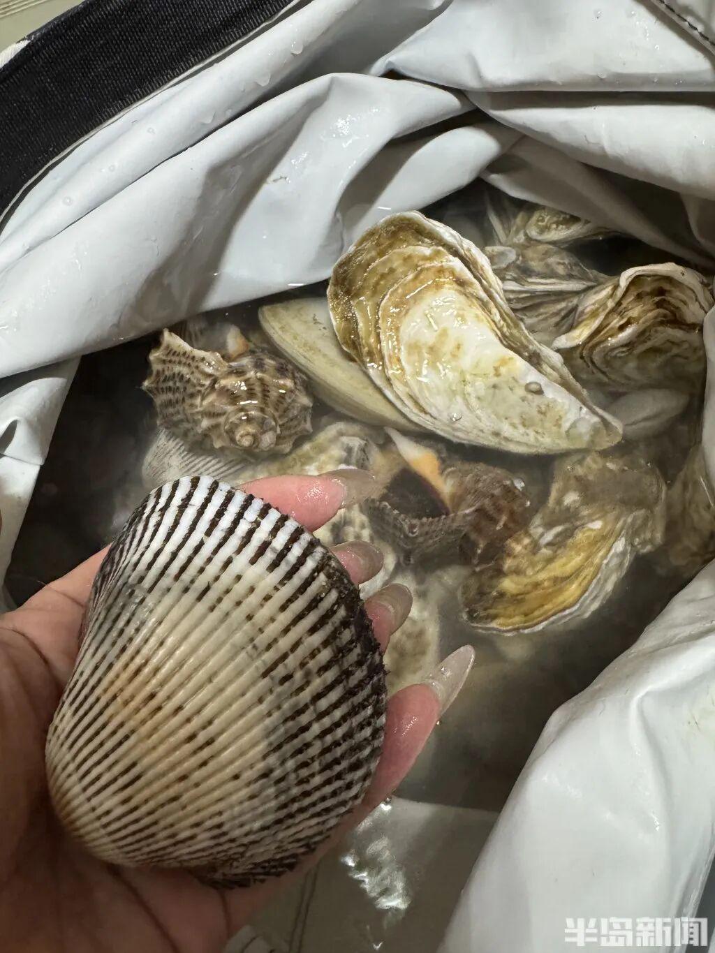 青岛市民韦女士就是其中一员。她不到两个小时就捡了60多斤海鲜,还有不少人背了三四麻袋回家,满载而归。