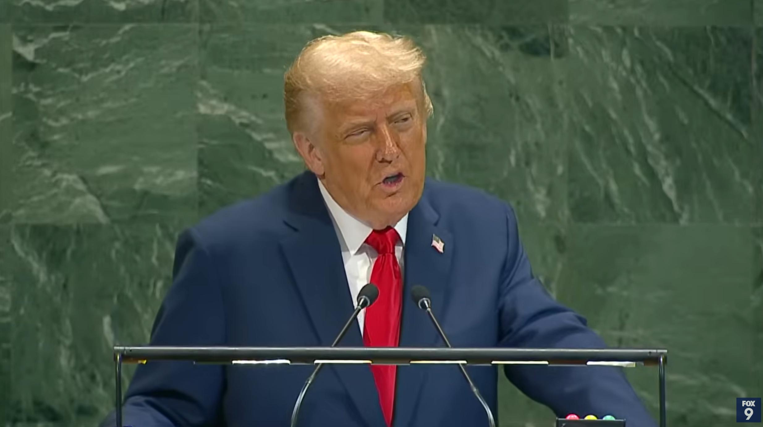 当地时间9月23日,美国总统特朗普在纽约联合国总部发表讲话 视频截图
