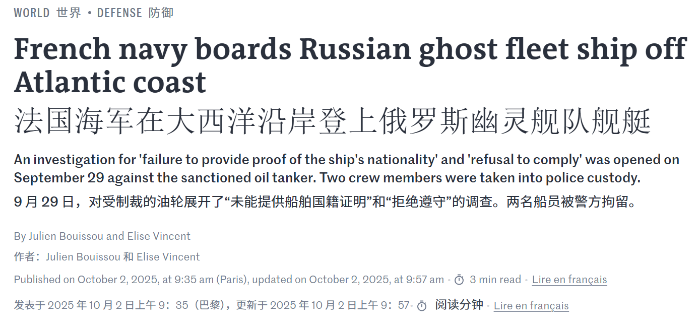 法国人当时气势十足,给出的理由听起来也挺像那么回事:他们怀疑这艘悬挂着贝宁国旗的油轮,是俄罗斯用来规避西方制裁的“影子舰队”一员,可能正在偷偷运送军用物资。