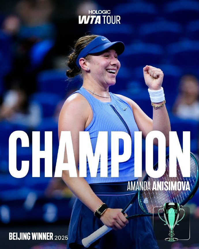 北京时间10月5日,2025年WTA1000中网女单决赛迎来巅峰对决,3号种子阿尼西莫娃与26号种子诺斯科娃展开激烈角逐。经过三盘激战,阿尼西莫娃以6-0、2-6和6-2的比分,总分2-1战胜诺斯科娃,首次夺得中网女单冠军,这也是她职业生涯第2座1000赛女单冠军和第4座巡回赛女单冠军。她成为继小威与高芙之后,第三位在中网女单赛场登顶的美国选手,诺斯科娃则收获亚军。
