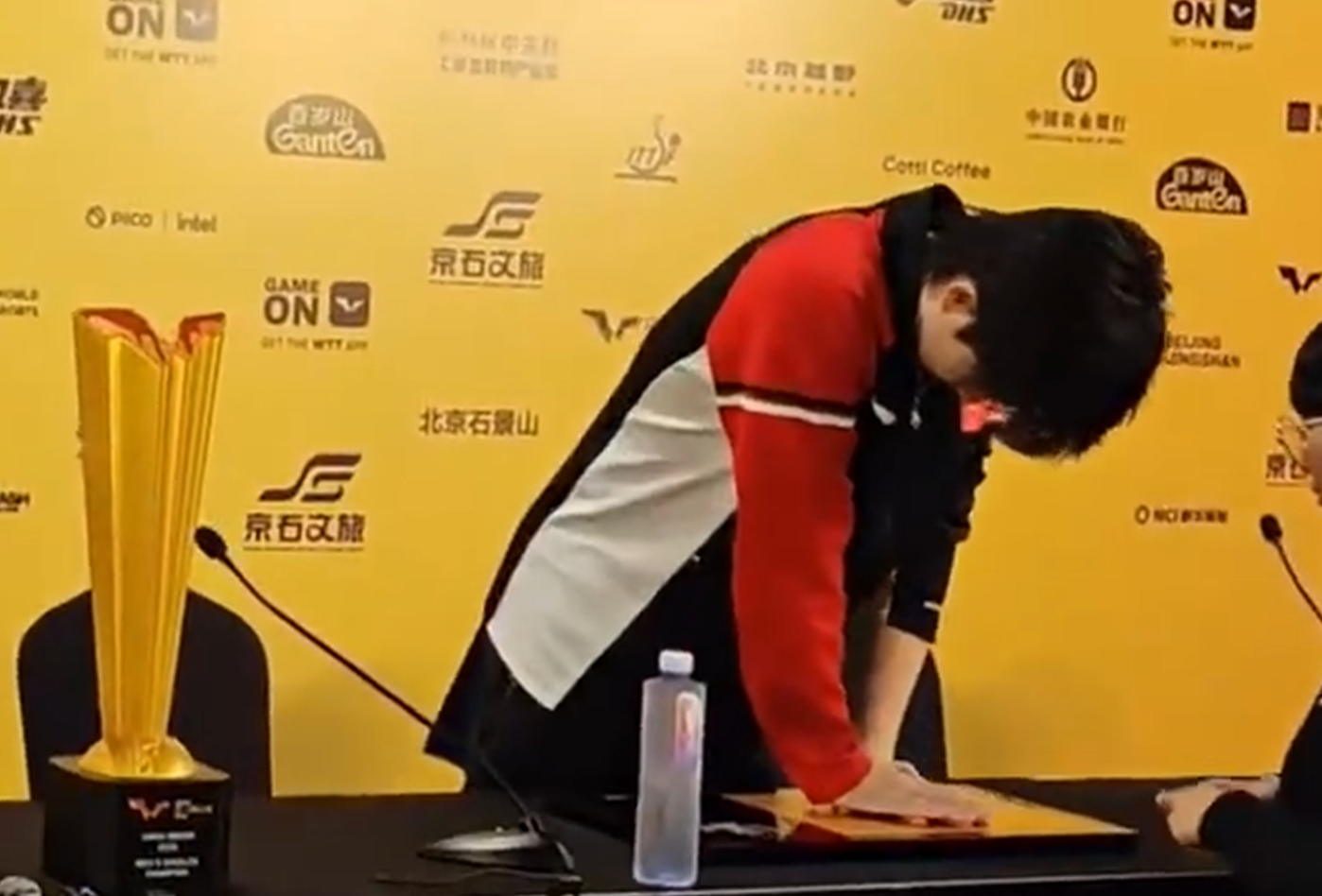发布会最后,王楚钦还亲手制作了冠军手膜作为纪念。不过,在退场的时候,他依然显得非常疲惫。幸好,接下来的时间他可以好好休息,为未来的比赛积蓄力量。