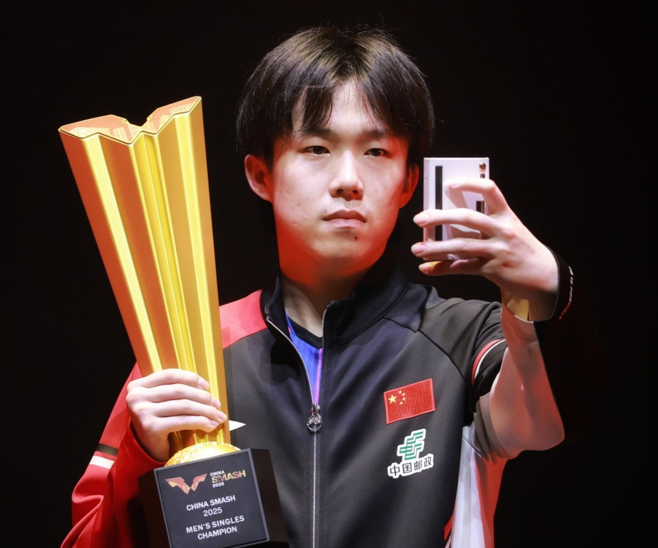从王楚钦手持冠军奖杯自拍时的画面可以看到,他的表情十分严肃,给人一种不苟言笑的感觉。