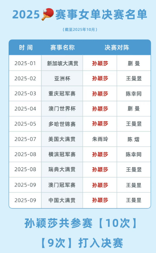 第四局,王曼昱更是势如破竹,开局便打出6-0的攻势,让即使是世界排名第一的孙颖莎也感受到了巨大的压力。王曼昱以大比分3-1领先后,孙颖莎在第五局以11-8扳回一城。然而,在第六局中,两人战至2-2平后,王曼昱再次发力,一波9-0的攻势直接锁定胜局,展现了她的横扫之势。