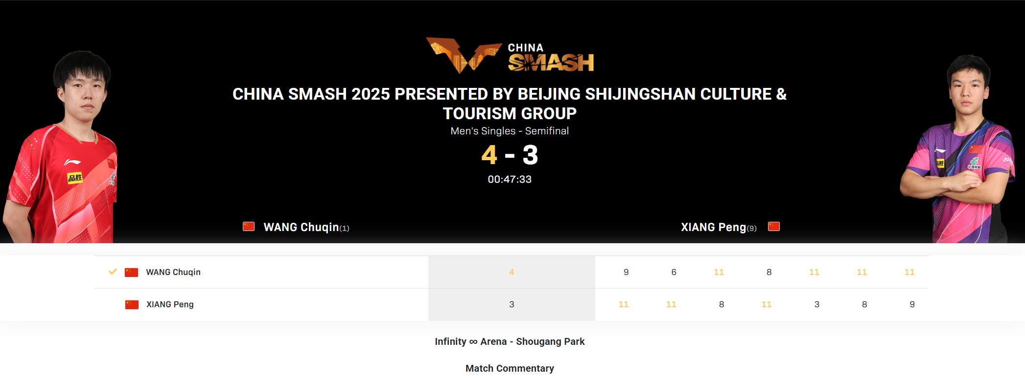 第三局,王楚钦终于扳回一局,但第四局向鹏又以11-8拿下,王楚钦此时已经1-3大比分落后。然而,王楚钦并没有被逆境所击倒,他在第五局最关键的一局中打出11-3的攻势,将比分改写为2-3。