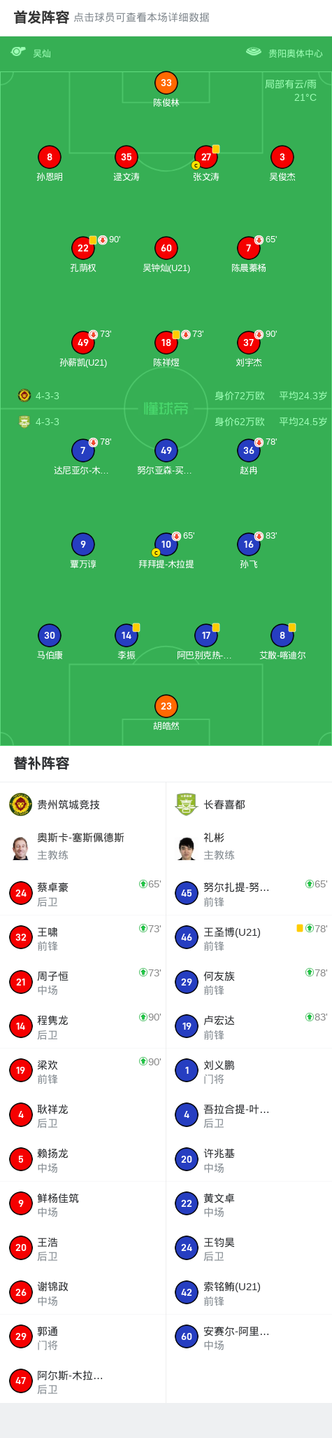 比赛中,贵州筑城竞技在前场连续配合,制造出了不小的压力,试图打破僵局。而长春喜都则通过快速反击,寻找破门的机会。然而,尽管两队多次制造威胁进攻,但均未能把握住破门的良机。双方的射门都被对方球员成功化解,场上比分始终未能改变。