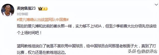有球迷认为,曾凡博目前的实力确实还不足以在NBA立足,但至少在季前赛这样的大比分领先情况下,应该给他一些上场时间来锻炼和展示自己。然而,现实却并非如此。