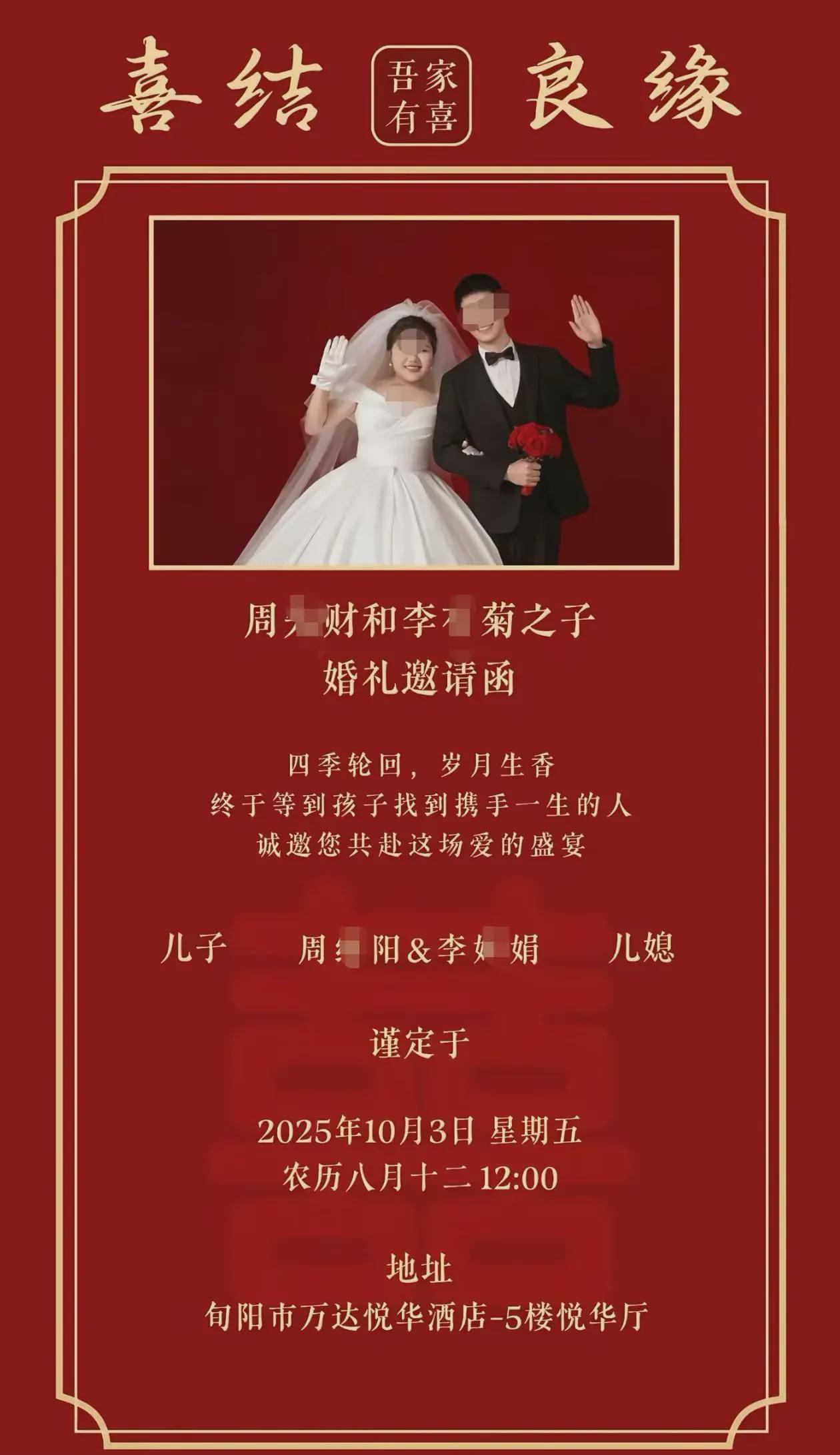 这一天,周家热闹非凡,亲朋好友齐聚一堂,庆祝大学老师周某阳与李某娟的婚礼。