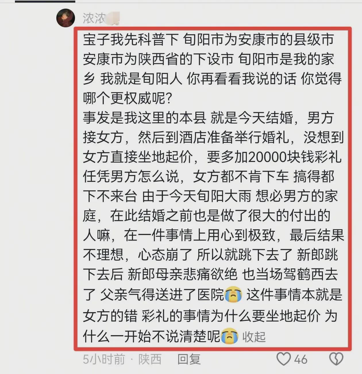 如果不是因为新娘临时索要2万元的下车礼,那是什么呢?在人生最幸福的时刻,选择跳河,肯定是多种因素和矛盾叠加所致。