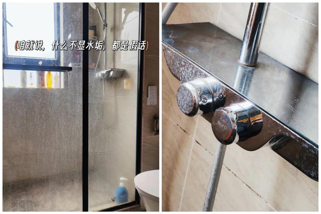 3)维护麻烦:淋浴区本身就是一块“重度水垢区”,双淋浴房配置就意味着你的家务量会增加一倍。水垢、皂渍、霉菌等,极大消耗了生活的精力和耐心。