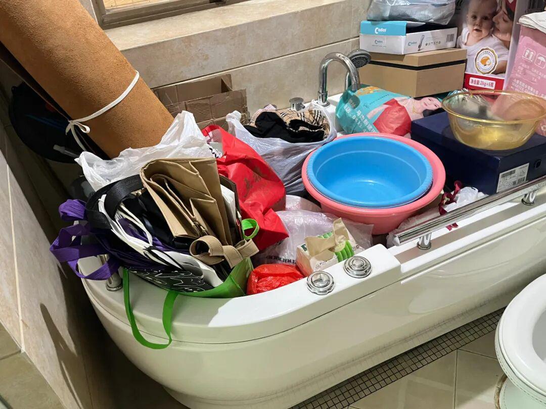 网友@一隅:自从有了娃后,我家的主卫淋浴区,也不知道从什么时候就沦为了“杂物堆放区”。