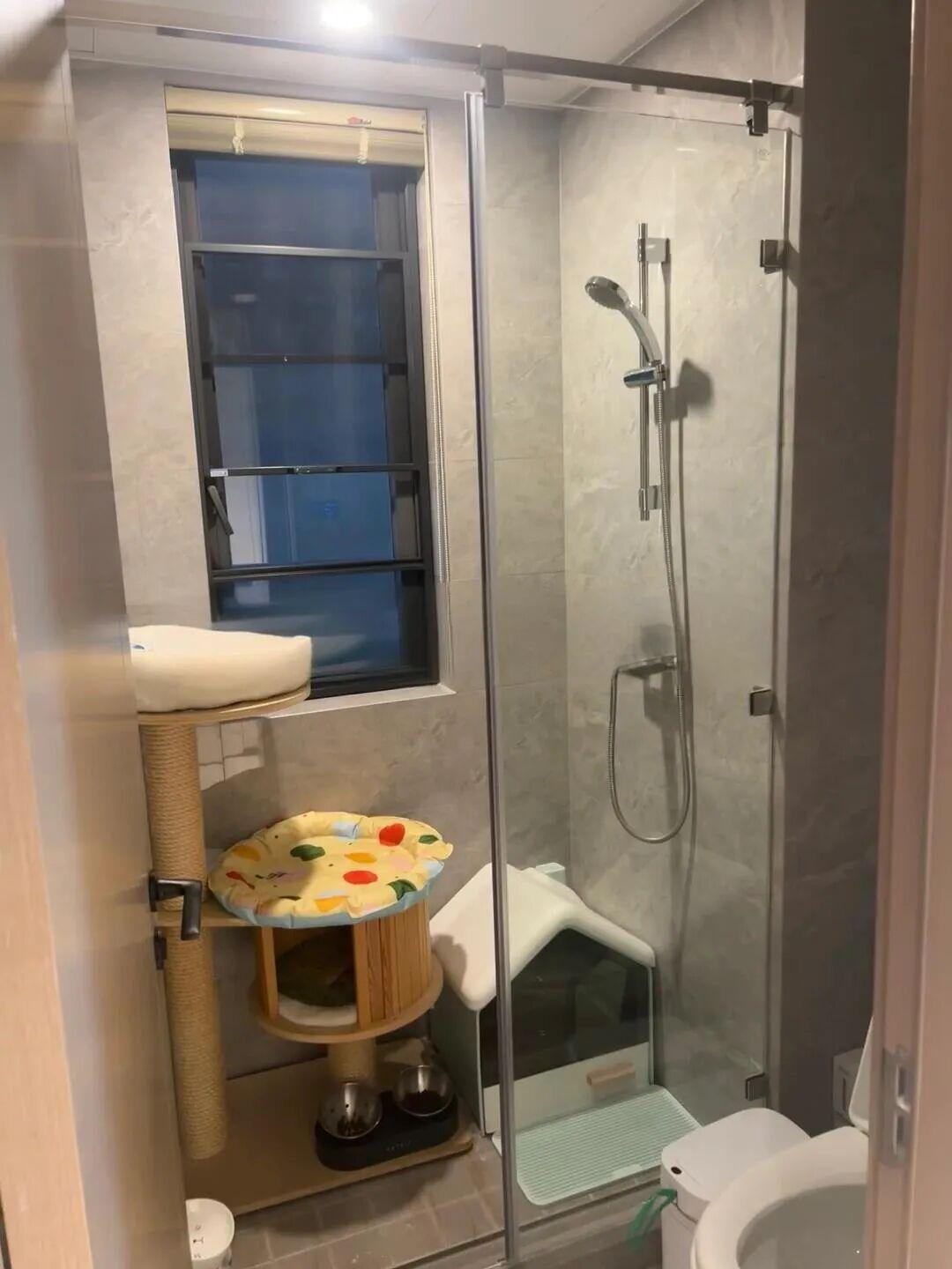 对于养宠的家庭来说,如果你家没有合适的空间安排这些小家伙,那么主卫淋浴区就是一个不错的选择。