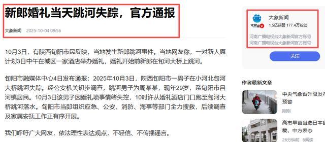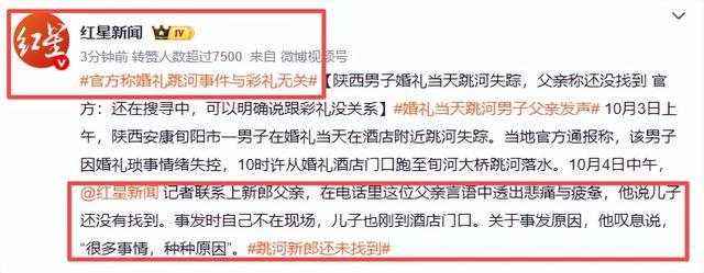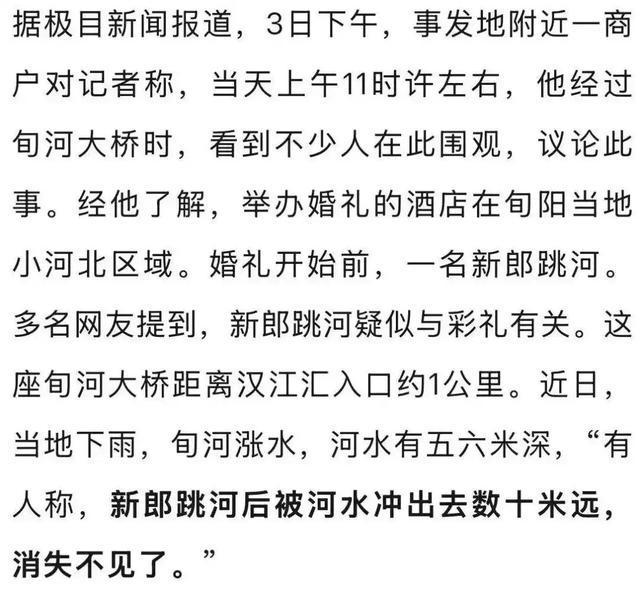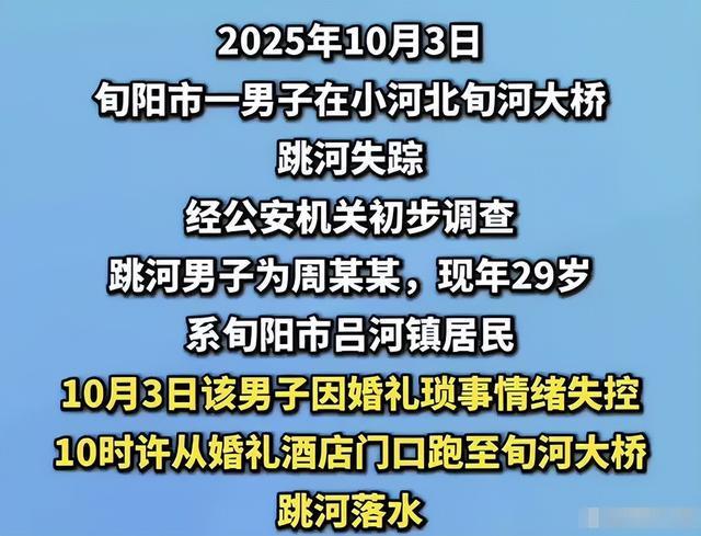 虽然官方通报仅提及婚礼琐事情绪失控,但与新郎跳河有关的传言,却在社交平台上迅速扩散,成了最受关注的话题。