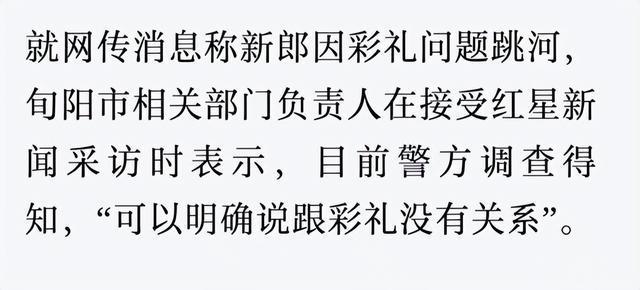 官媒明确指出,新郎跳河和彩礼没有关系,具体原因仍需进一步调查。