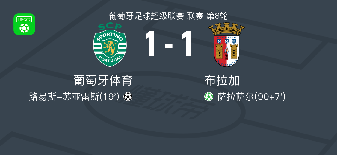 然而,布拉加并未放弃。下半场补时第7分钟,场上形势发生戏剧性变化。布拉加获得点球机会,萨拉萨尔顶住压力,稳稳将球罚入,帮助客队在最后时刻扳平比分。这一进球也让布拉加全队士气大振,最终双方以1-1结束比赛。