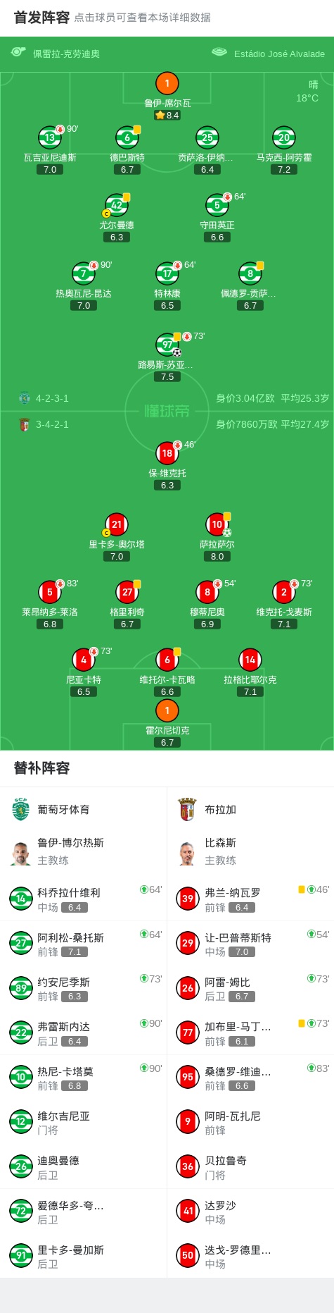 本场比赛,双方均派出主力阵容出战。葡萄牙体育在控球率和射门次数上占据一定优势,但布拉加凭借顽强的防守和高效的反击,最终在客场带走1分。技术统计显示,葡萄牙体育全场射门次数达到12次,其中5次射正;布拉加则有8次射门,3次射正。