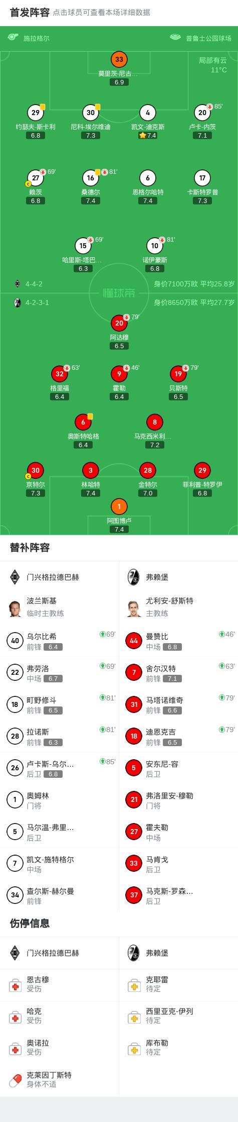 本场比赛,门兴格拉德巴赫与弗赖堡均派出主力阵容出战。主队门兴格拉德巴赫延续了4-2-3-1的经典阵型,试图通过中场控制掌握比赛节奏;客队弗赖堡则以3-4-3阵型应对,强调边路进攻与快速反击。双方在攻防两端均展现出较高水准,门将多次做出关键扑救,力保球门不失。