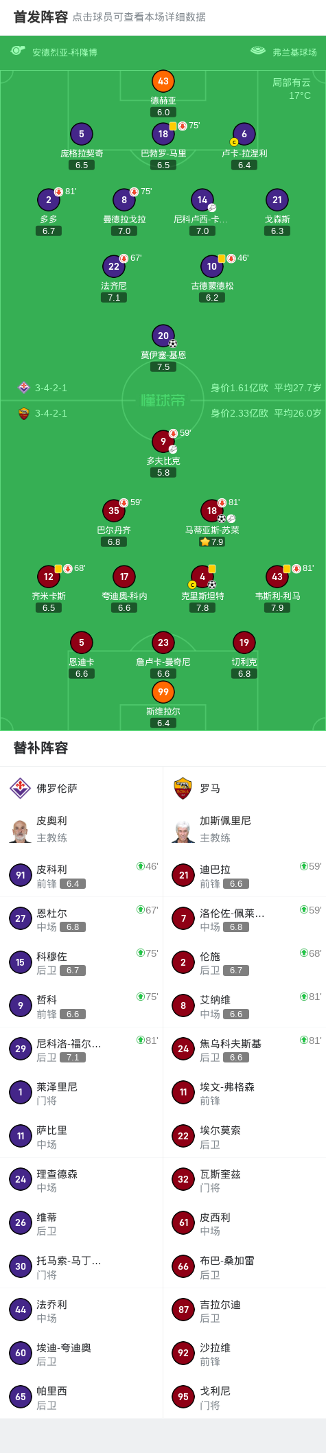 比赛临近尾声,皮科利在禁区外尝试远射,皮球击中横梁弹出底线,佛罗伦萨最终无力回天。