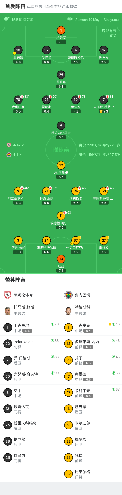 第23分钟,萨姆松体育发动攻势,什克里尼亚尔完成关键解围,费内巴切门将随即做出精彩扑救,力保球门不失。