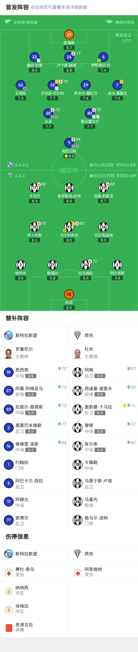 从技术统计来看,斯特拉斯堡在控球率、射门次数等关键数据上均占据明显优势,展现出强大的整体实力。昂热则在本场比赛中显得力不从心,防线多次被斯特拉斯堡的进攻组合打穿。