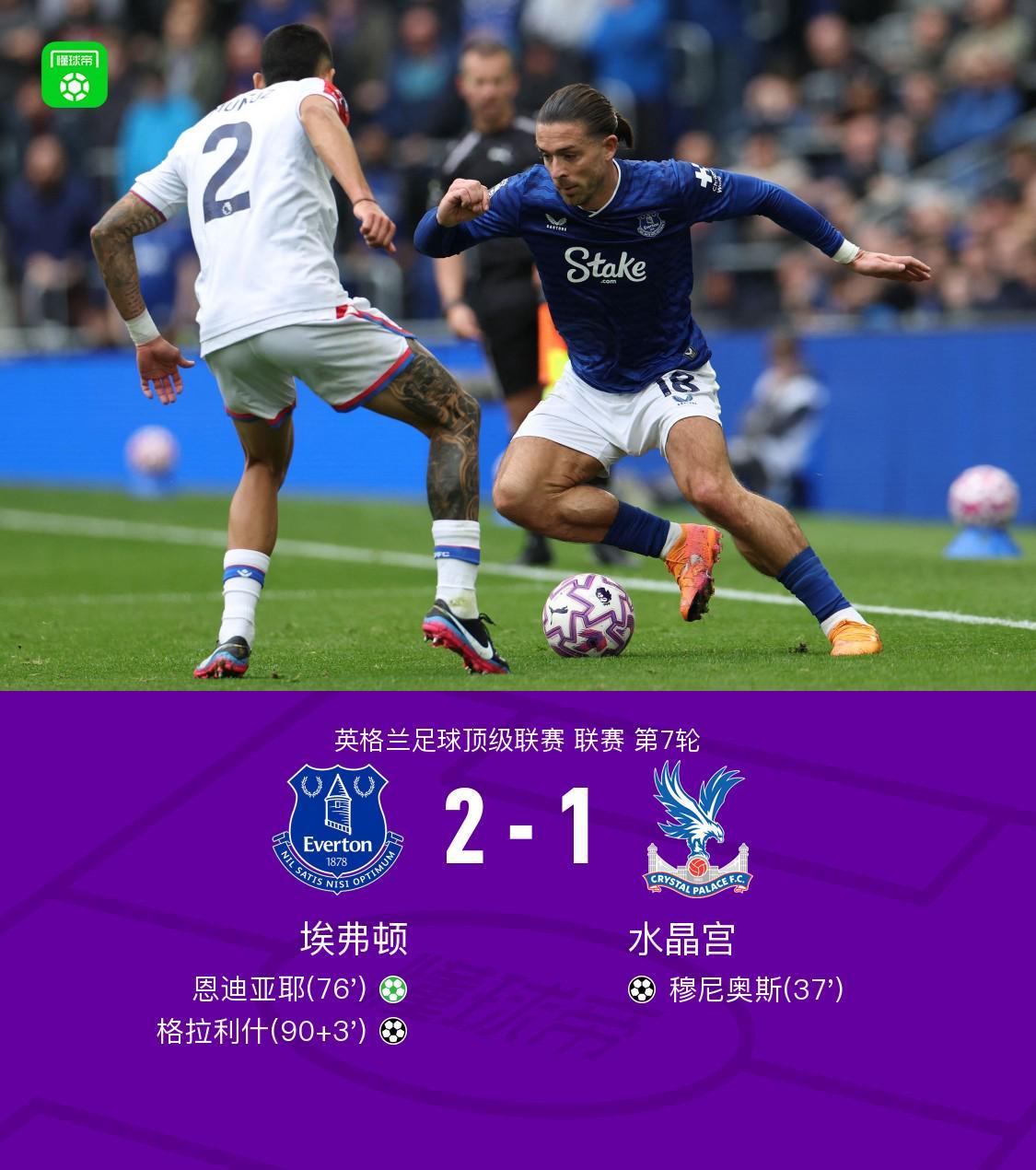 比赛进入补时阶段,第90+2分钟,格拉利什抓住对方解围失误,将球挡入网窝,埃弗顿2-1反超比分,完成惊天逆转。