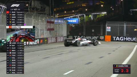 第四十五圈,霍肯伯格在7号弯前车的脏气流中失控,但迅速重新回到赛道,避免了事故。第四十七圈,汉密尔顿第二次进站,并换上软胎,试图提升速度。