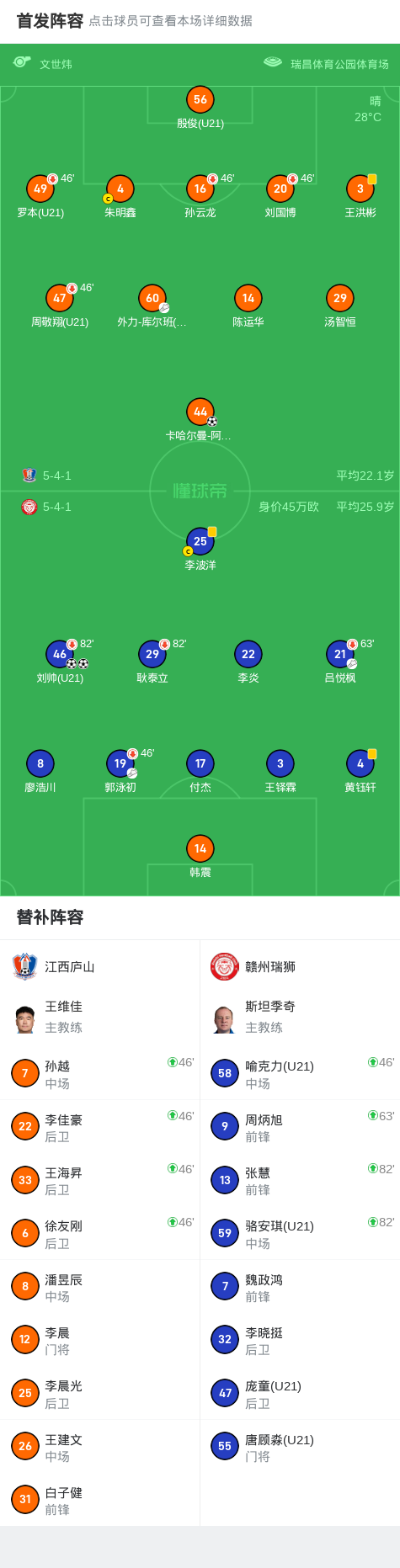 北京时间10月5日,中国足球乙级联赛决赛阶段保级组第28轮迎来一场焦点对决,江西庐山坐镇主场迎战赣州瑞狮。最终,赣州瑞狮凭借刘帅的出色发挥,以2-1的比分战胜江西庐山,成功全取三分。