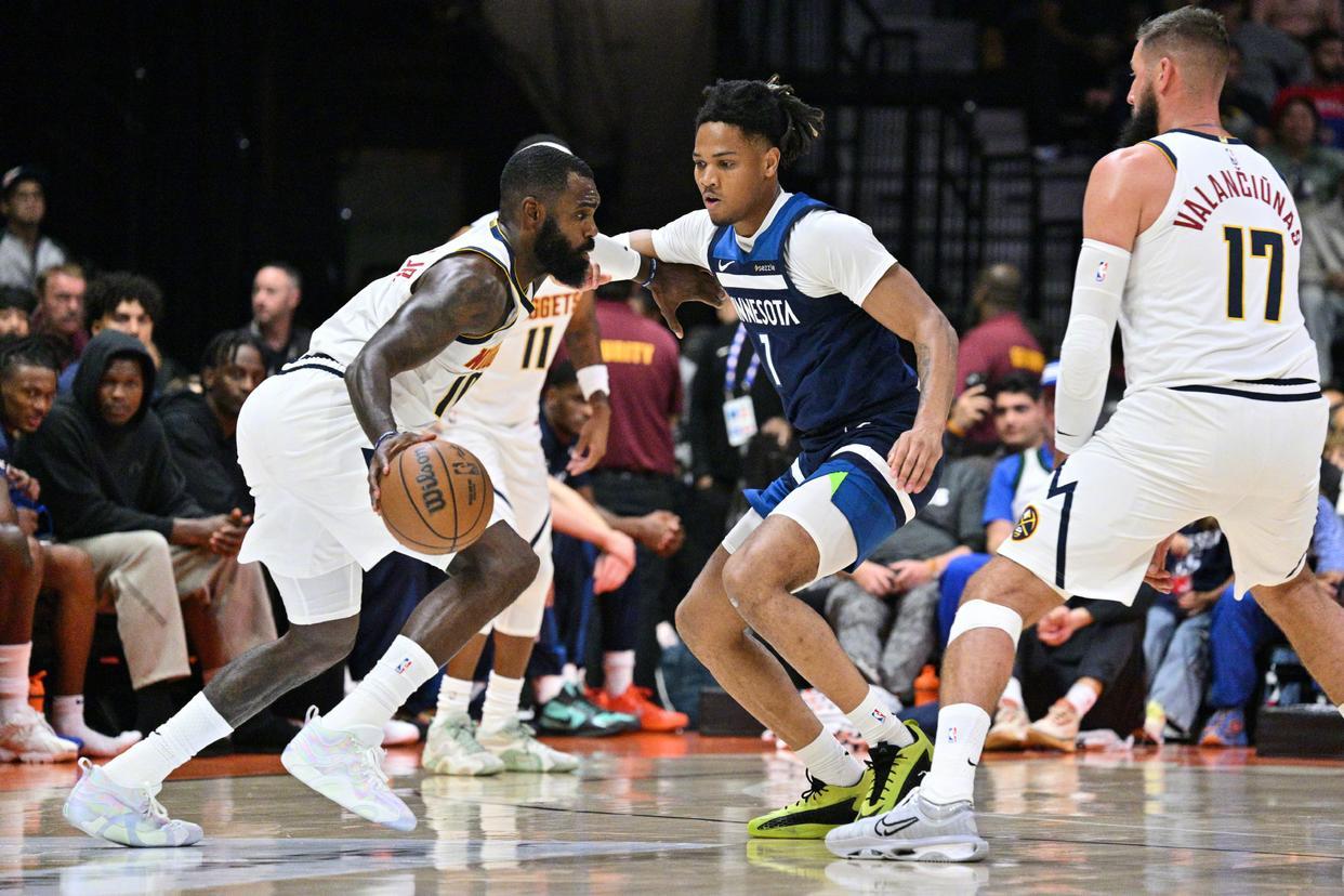 今日NBA季前赛迎来一场焦点对决,丹佛掘金队与明尼苏达森林狼展开激烈交锋。这场看似普通的季前赛,却因两位顶级内线的对决充满火药味,更在首节就上演了令人意想不到的剧情反转。