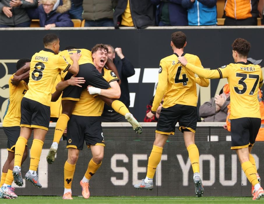 主场作战的狼队率先取得进球。比赛第21分钟,穆内西在禁区内凌空抽射,皮球被门将费布鲁亨扑了一下后击中横梁,反弹击中费布鲁亨的身体弹入球门,这粒乌龙球让布莱顿陷入了被动。半场结束,布莱顿0-1落后。上半场,布莱顿控球率49%,7次射门3次射正,但未能破门,而狼队4次射门便收获1球。