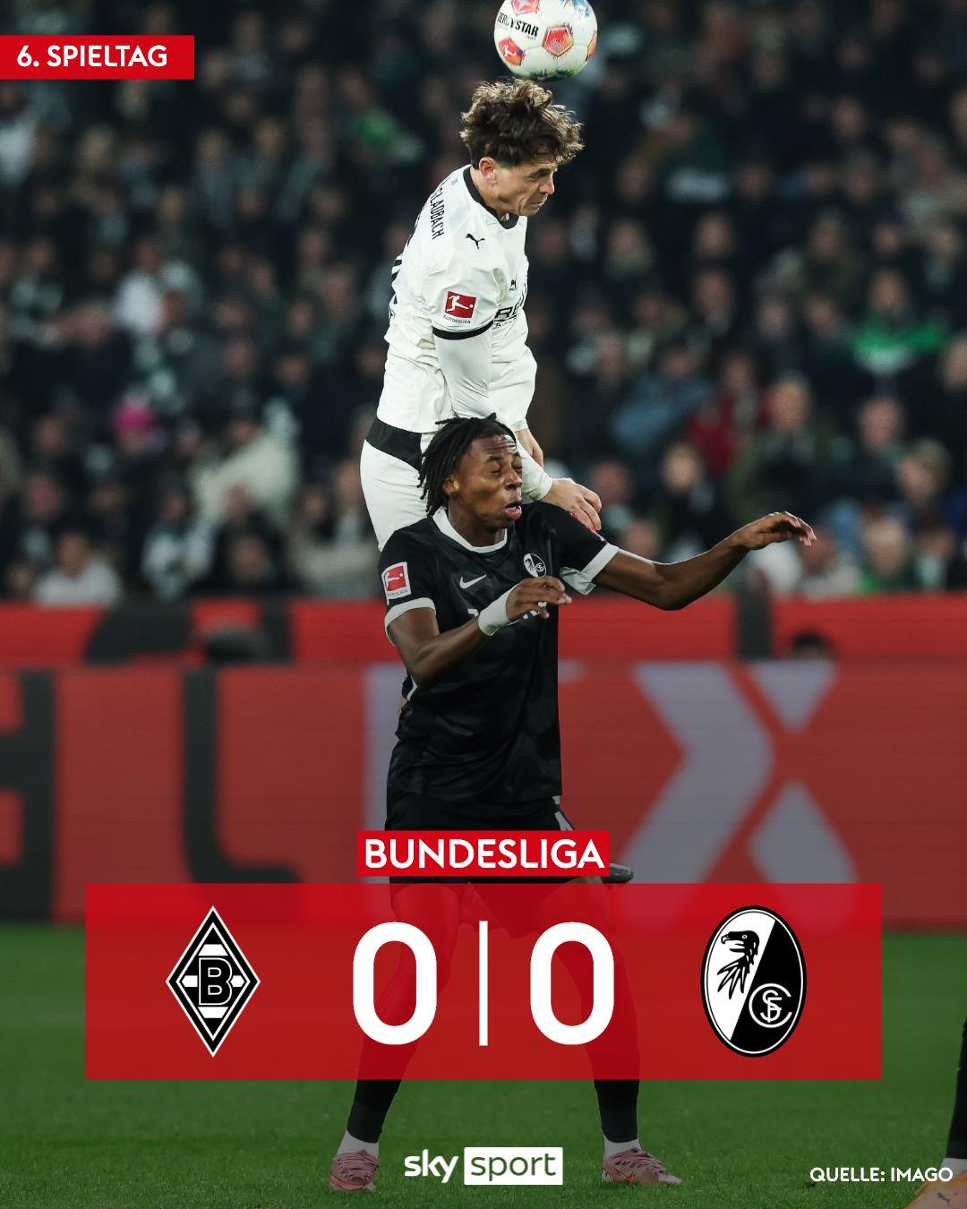 雷速体育10月6日讯,本周末,德甲联赛迎来了第6轮的全面较量。在备受瞩目的本轮最后一场比赛中,门兴格拉德巴赫坐镇主场,与弗赖堡展开了一场激烈的较量,最终双方以0-0的比分握手言和。