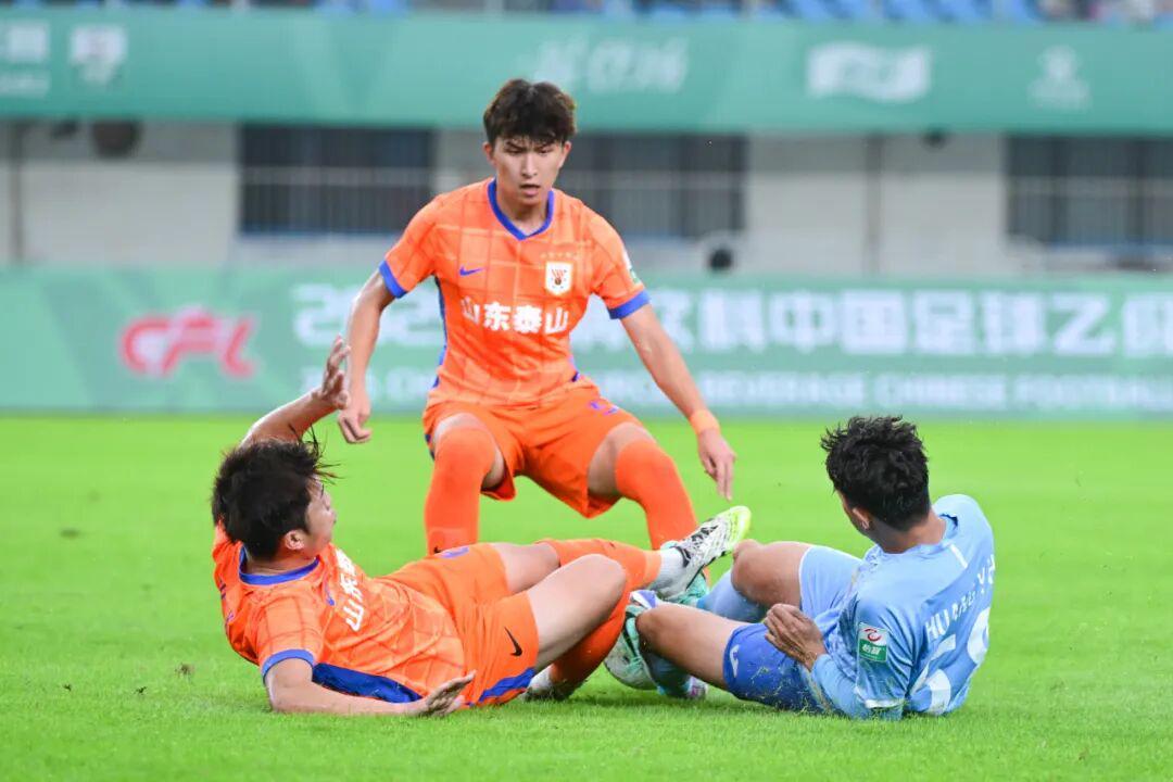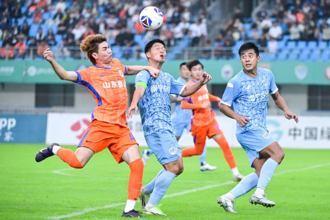 易边再战,下半场双方继续展开激烈争夺。补时阶段,山东泰山B队再次获得任意球机会,皮球击中门柱弹出,错失绝杀良机。最终,全场比赛结束,山东泰山B队0-0战平广西恒宸队,双方各取一分。