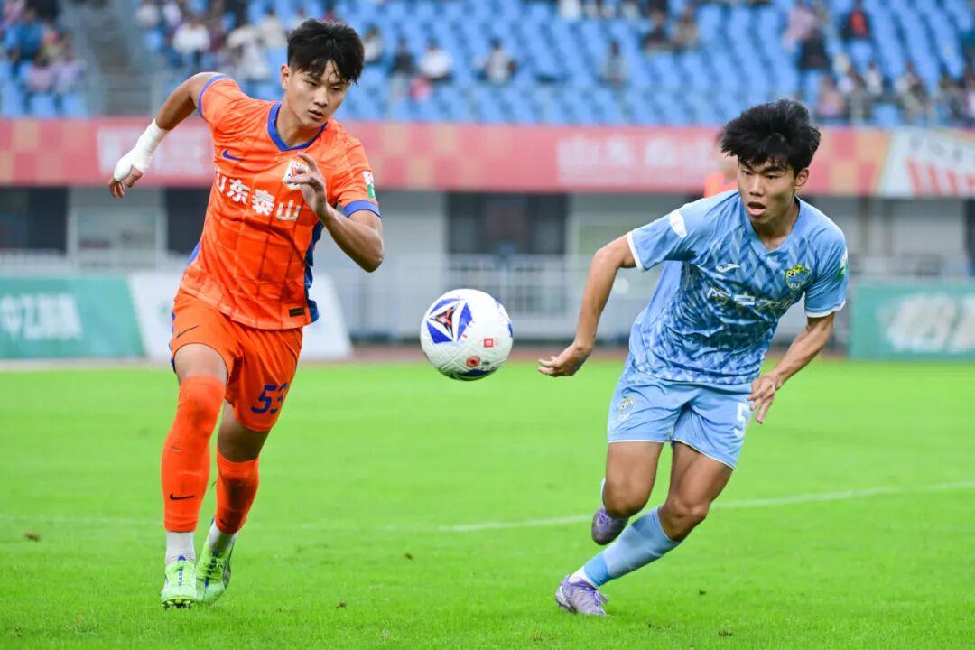 比赛开始后,主场作战的山东泰山B队迅速进入状态,展开猛烈攻势。第6分钟,王昊斌接队友精准传球,突入禁区后起脚打门,可惜皮球稍稍偏出。5分钟后,艾孜海尔·塔西麦麦提同样获得良机,他带球突破至禁区前沿,果断起脚射门,但皮球再次偏离目标,击中立柱外侧。第25分钟,山东泰山B队获得任意球机会,直接攻门被对方守门员神勇扑出。上半场临近结束时,第43分钟,艾孜海尔·塔西麦麦提接队友横传,头球攻门再度被对方门将化解,上半场双方互交白卷。