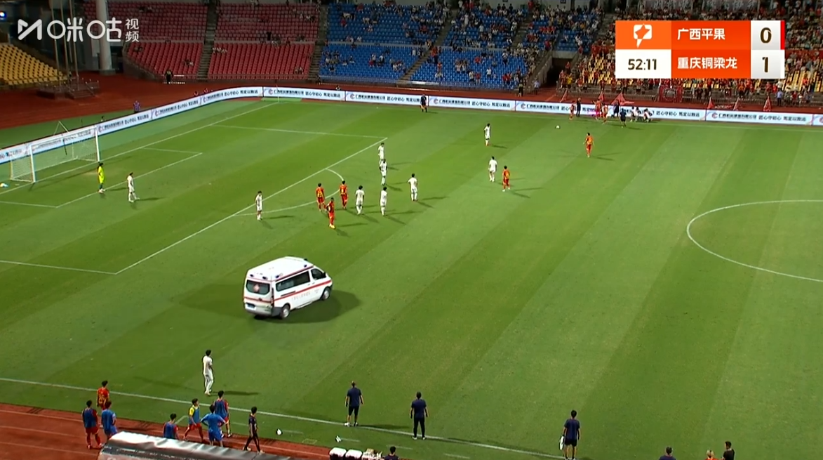 比赛进行至第50分钟,主队外援在争抢中被撞倒广告牌,重伤无法起身。妇幼医院救护车紧急入场将其送医,撞人球员张志雄仅被出示黄牌,从动作幅度看未达红牌标准,裁判判罚并无问题。然而此后比赛动作愈发激烈,第60分钟主队球员再度倒地,救护车二次入场,争议判罚接踵而至。