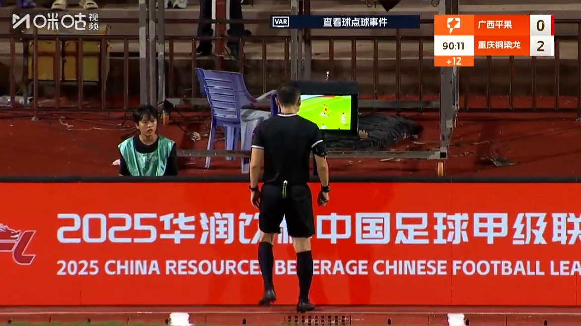 第60分钟,主队发起进攻传中至禁区,重庆铜梁龙球员解围时踢倒对手。VAR介入后,主裁判耳麦突发故障无法与视频助理裁判沟通,转而使用对讲机。更离奇的是,VAR视频仪器竟突然黑屏,导致主裁判无法回看犯规动作。最终,主裁判无奈维持原判未判点球,重庆铜梁龙因此逃过一劫。这一技术故障直接导致主队错失扳平良机。
