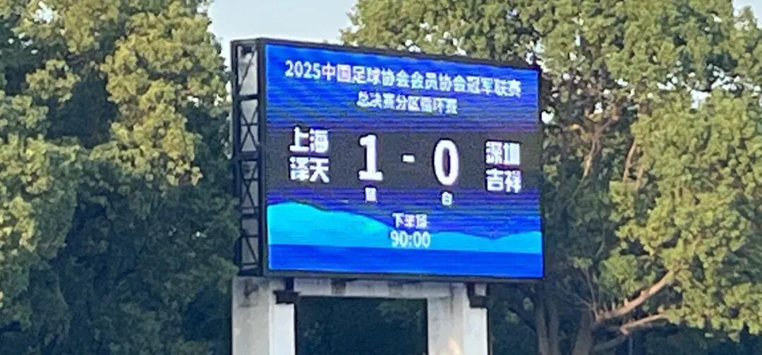 今天(10月5日)下午,2025中国足球协会会员协会冠军联赛(简称“中冠联赛”)总决赛分区循环赛在金山体育中心激情上演。金山足球俱乐部上海泽天队坐镇主场,迎战实力不俗的深圳吉祥队,最终以1:0的比分力克对手,取得了一场宝贵的胜利。